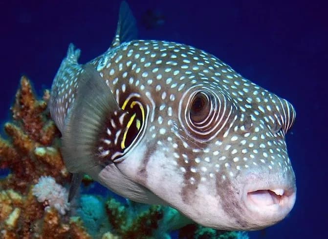 Pufferfish are a group of fish known for their ability to inflate their bodies as a defense mechanism and often have toxins that deter predators.Scientific Name