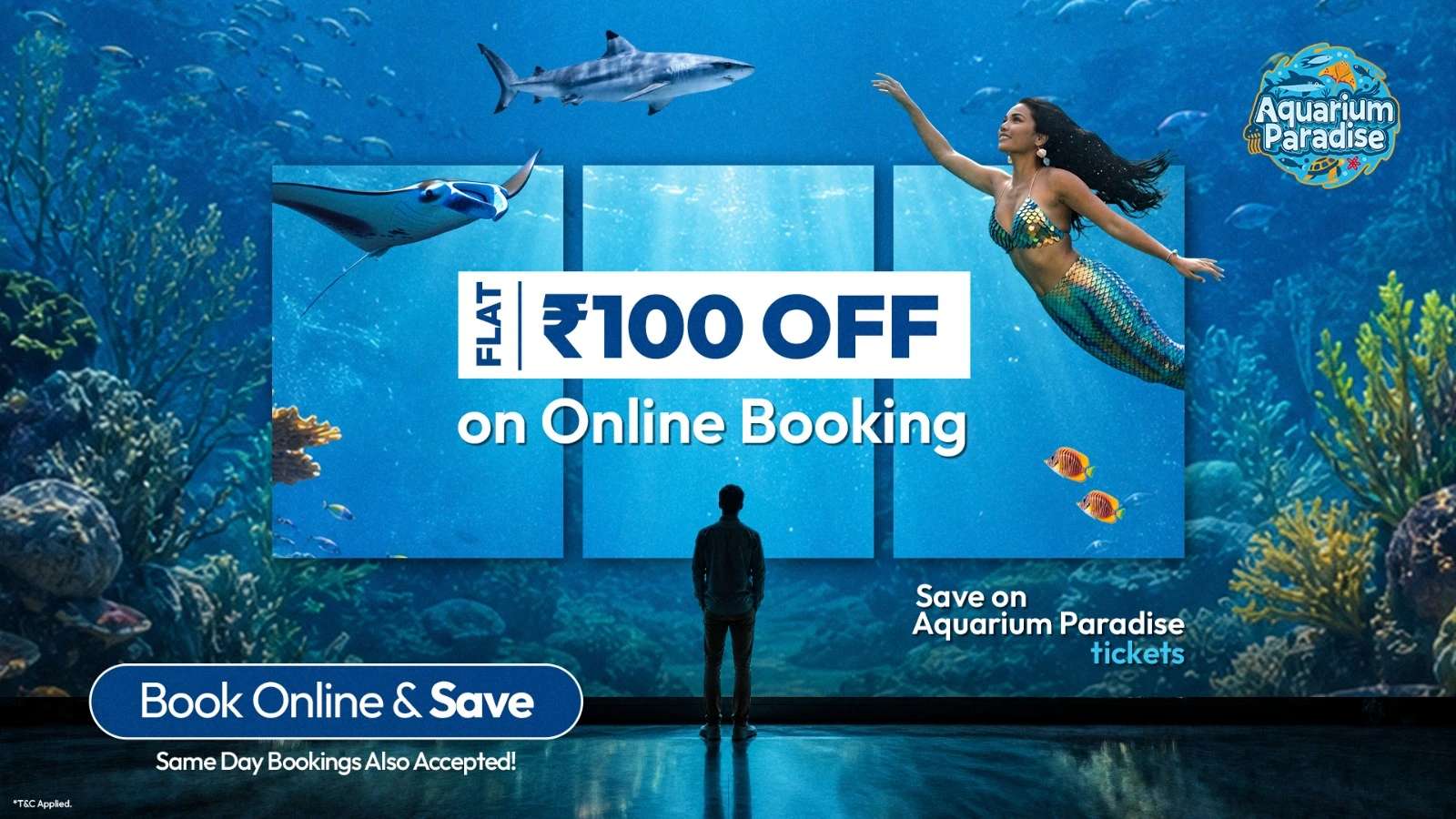 Enjoy a special limited-time offer at Aquarium Paradise! Get a flat ₹100 discount when you book your tickets online. Plan your visit in advance and save more on your aquatic adventure.
