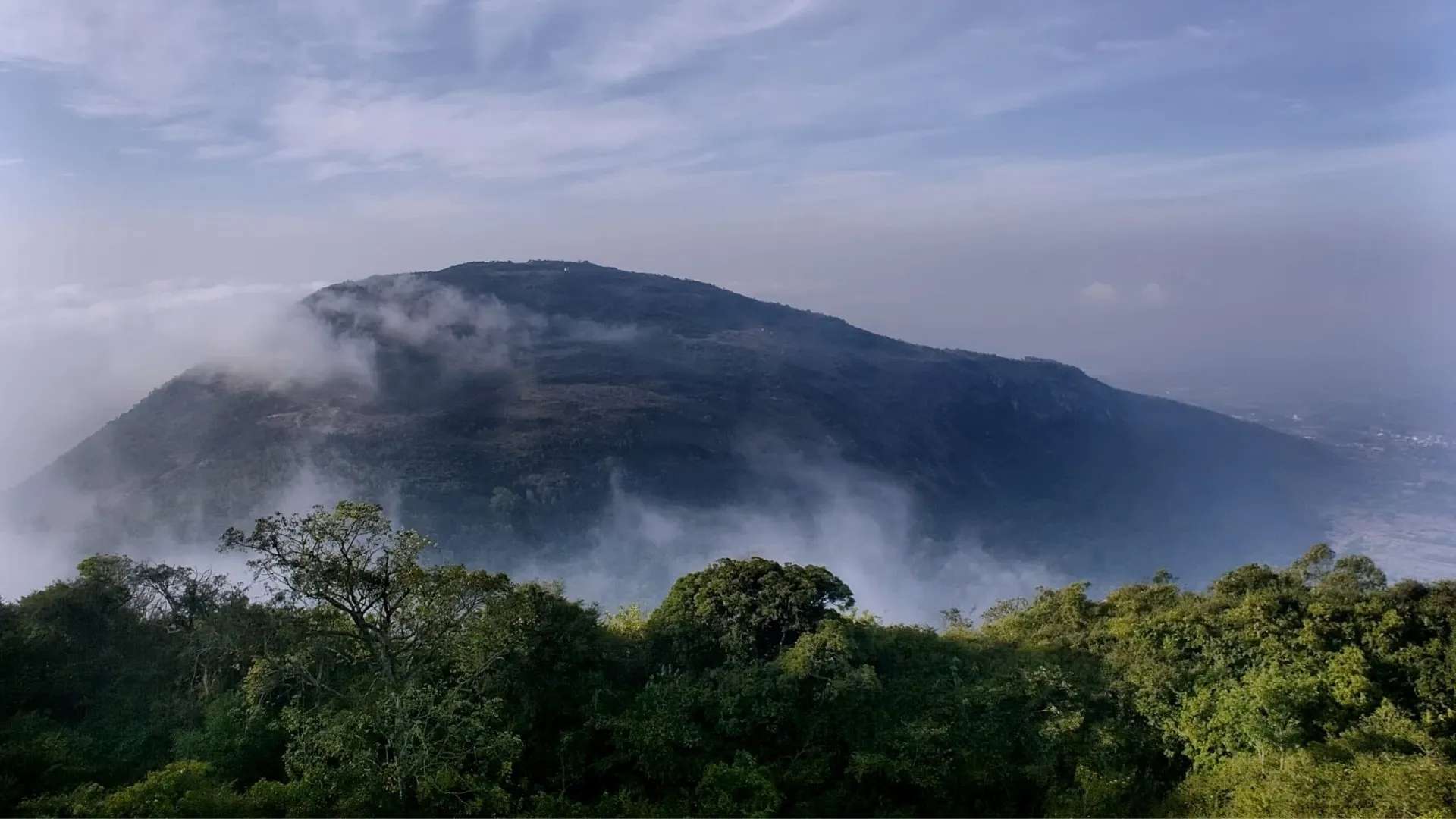 The hill rises about 1,226 metres above sea level and splits into two peaks: Karigudda (black hill) and Biligudda (white hill). The trekking route up Biligudda is the more accessible one, and it's challenging enough to feel earned without requiring technical climbing experience.